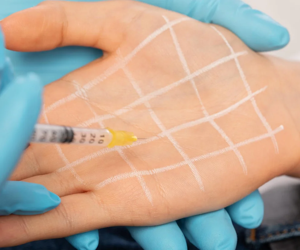 Zastrzyki z toksyny botulinowej są jedną z popularniejszych metod leczenia nadpotliwości dłoni. Działają poprzez zablokowanie impulsów nerwowych, które pobudzają gruczoły potowe. Skuteczność tej metody oceniana jest bardzo wysoko - poprawę zauważa od 80 do 90 proc. pacjentów. Działanie botoksu nie jest jednak trwałe, efekty terapii zwykle utrzymują się przez około sześć miesięcy.