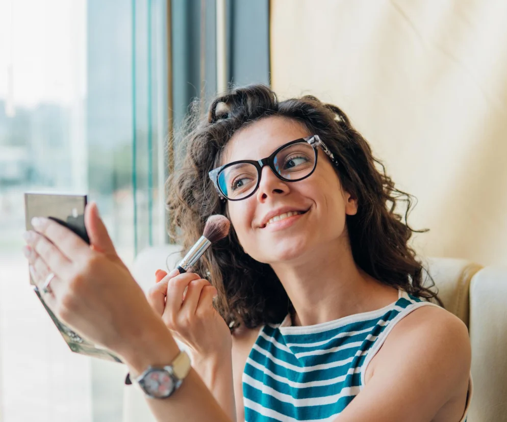 Grubość oprawek a makijaż twarzy. Jak dopasować kosmetyki do ram okularów?